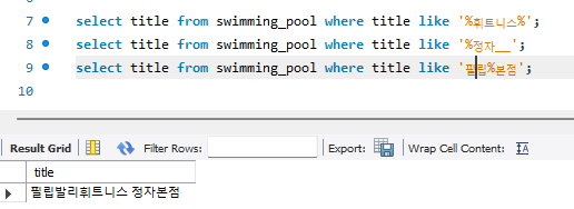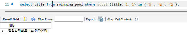 - substr 연산을 사용하여 맨 첫글자가 뭐인것, 이런식으로도 검색가능
