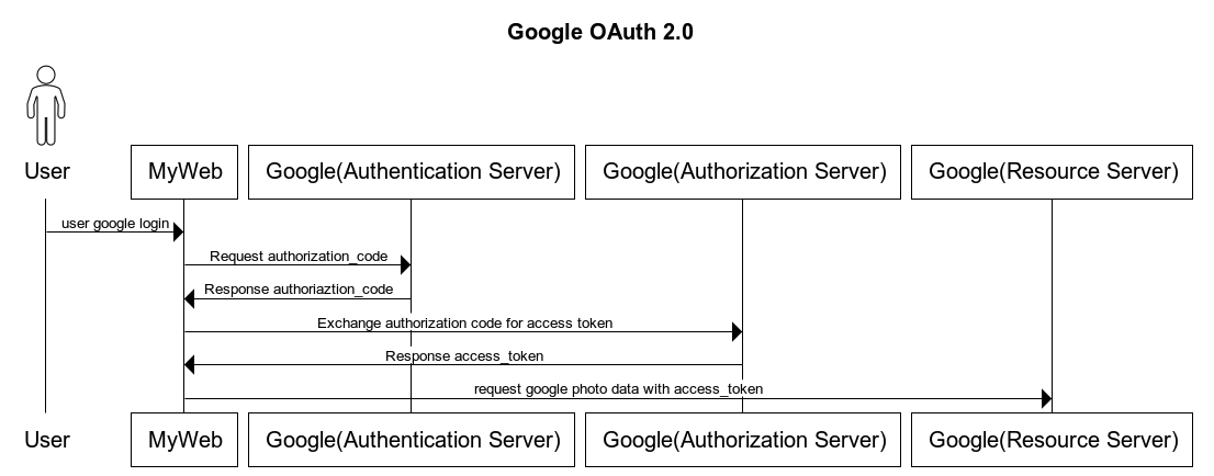 - 유저는 구글계정으로 로그인하여 authentization(신원확인)을 받는다. 그 결과로 authorization_code를 받는다.