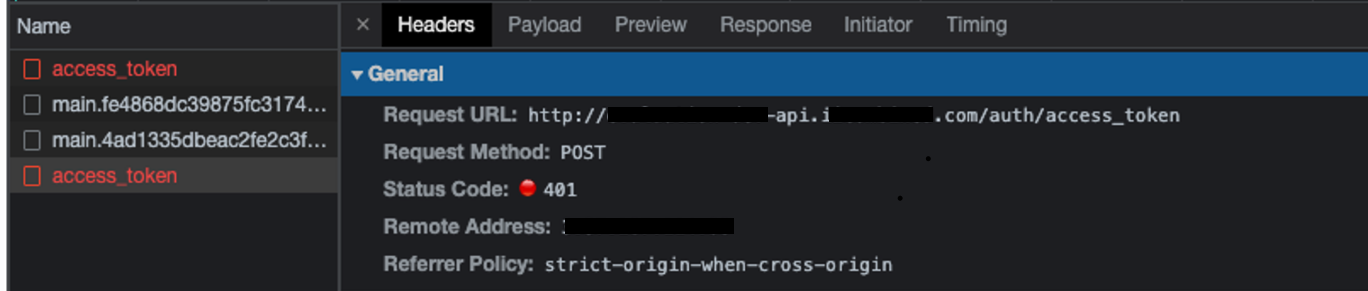 - 서버로부터 정상(여기서는 401이 정상임, 잘못된 계정을 입력했기 때문에 unauthorized, 내가 받고싶었던 응답) 응답을 받음