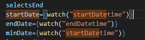 watch("startDatetime") 을 console.log로 찍어보았다.