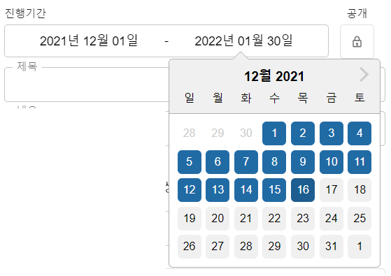 기간을 입력받은 range Picker 이다.