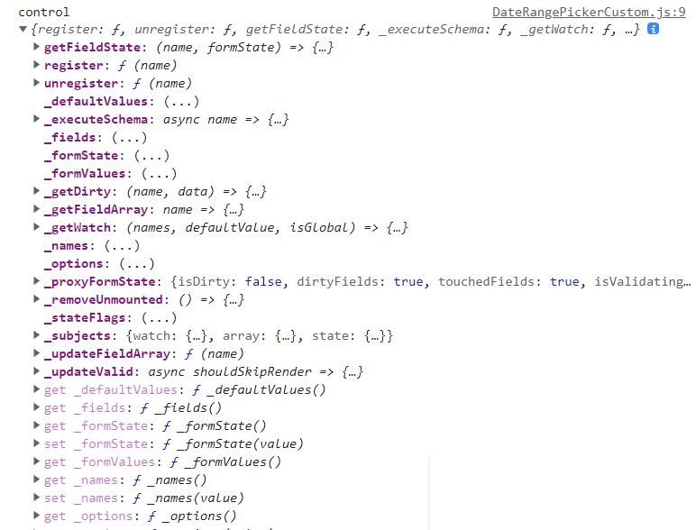 3. 부모로 부터 전달받은 control을 console.log로 찍어봤다.