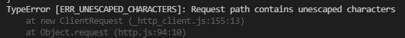 TypeError [ERR_UNESCAPED_CHARACTERS]: Request path contains unescaped characters