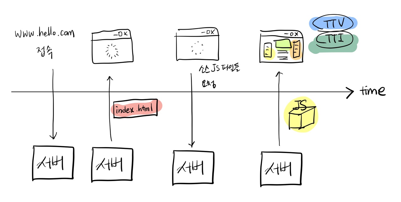 3) 사용자가 빠르게 웹사이트를 볼 수 있지만, 인터렉션이 없는 경우가 있다 (js가 아직 없어서)