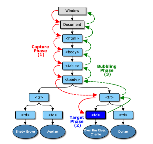 캡처링과 버블링을 간단히 정의하면 다음과 같다.