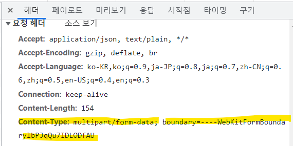 multipart/form-data는 이미지파일과같은 바이너리 파일들을 함께 전송할때 사용