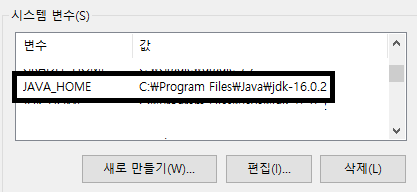 : 시스템변수 신규 추가 JAVA_HOME
